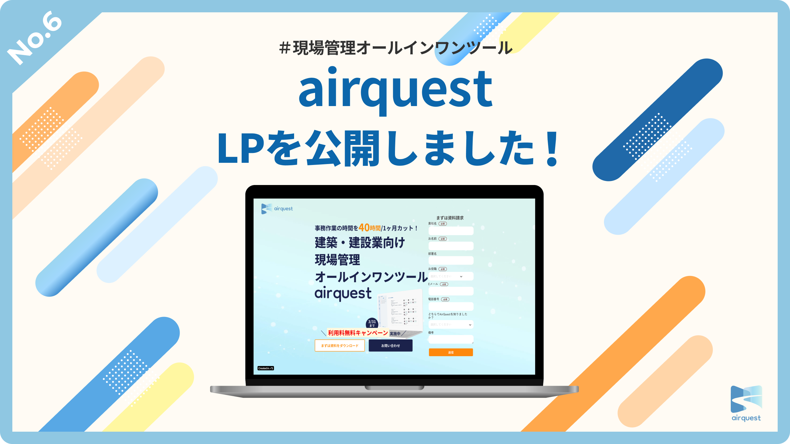 【事務作業を月40時間カット!】現場管理オールインワンツール《AirQuest》LP公開のお知らせ