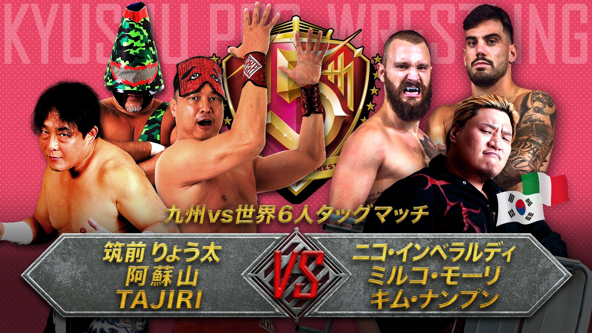 第三試合 筑前りょう太&TAJIRI&阿蘇山 vs ニコ・モーリ&ミルコ・インベラルディ&キム・ナンプン