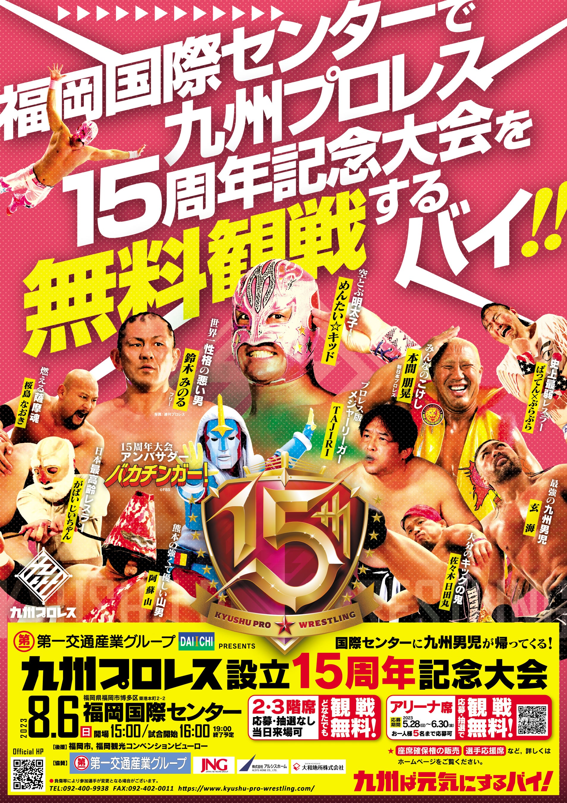 8月6日(日)福岡国際センターで無料観戦!九州プロレス15周年記念大会