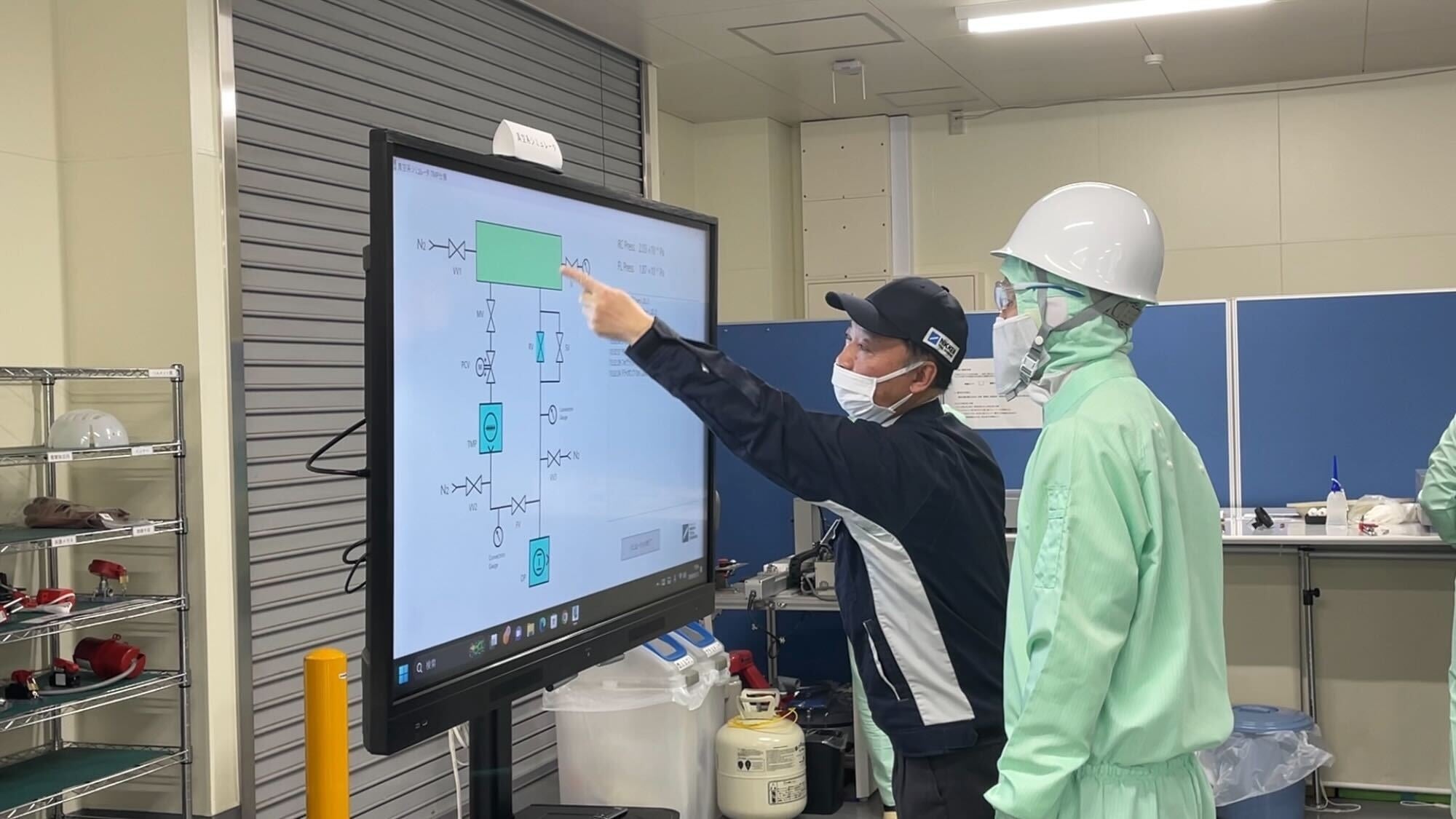 また、半導体製造業務の基礎となる、半導体装置の維持管理業務の実習を実施。当社で実際に実施している研修内容をもとに、現場で使用される機器を使った、基礎研修を行いました。
