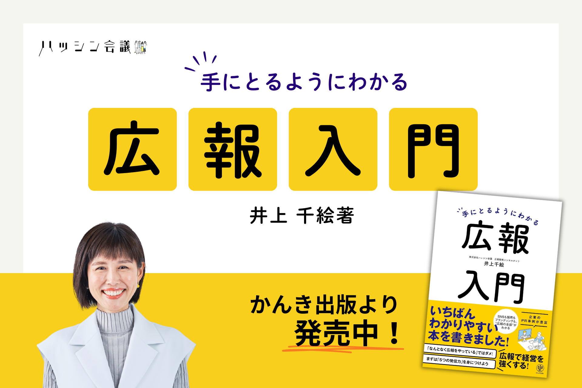 代表の井上千絵は、書籍『ひとり広報の教科書』『手にとるようにわかる広報入門』を上梓しています。2冊とも共通して「広報機能は必要とされているのに、小さな組織でも再現性を持って実施できる実践的な広報の知識を学ぶ機会が圧倒的に足りていない」 という現場の課題が強く反映されています。新刊の『手にとるようにわかる広報入門』では広報をこれから始める人や、小さな組織でも再現性をもって広報に取り組みたい人に向けて、基礎知識と実践事例を整理しました。