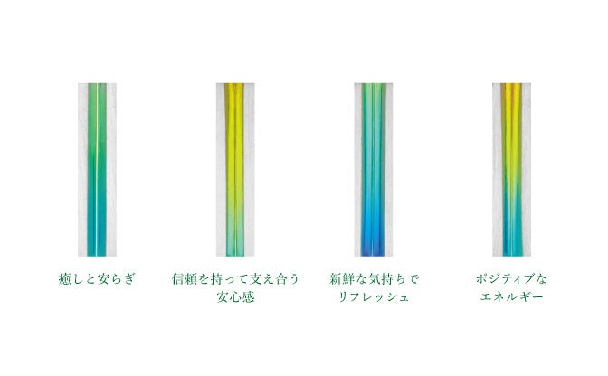 【ポジティブなエネルギー】温かみのあるイエローグリーンから爽やかなグリーン。何事にも、明るさと前向きな姿勢が周りの雰囲気をポジティブに変え、勇気と希望を与えてくれる。