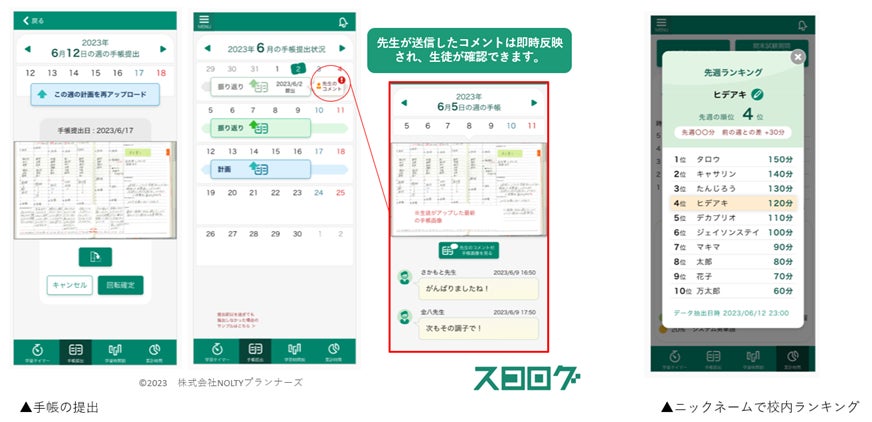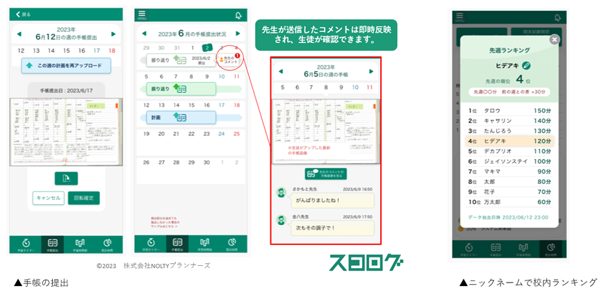 従来の学習時間を測るタイマー機能と手帳紙面を写真で提出する機能に加え、学習時間の校内ランキングが表示されるようになりました。