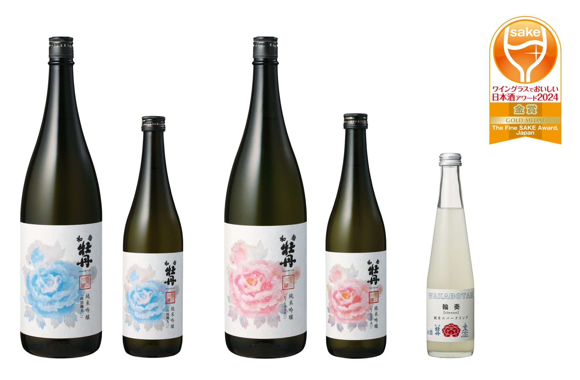 金賞を受賞したのは、プレミアム純米部門で『和香牡丹 純米吟醸 山田錦50』と『和香牡丹 純米吟醸 ヒノヒカリ50』、プレミアムスパークリングSAKE部門で『和香牡丹 輪奏 純米スパークリング』です。
