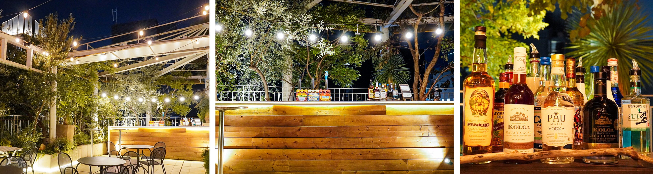 「THE ISLAND ROOFTOP BAR」は、銀座駅徒歩3分のハワイアンレストラン「THE ISLAND」があるビル屋上に6月~10月上旬の期間限定でオープンしている、知る人ぞ知るシークレットBAR。グリーンをふんだんに配した屋上スペースにバーカウンターやテーブル席、ソファ席がゆったりと配置され、心地よい夜風を感じながらハワイのクラフトビール「コナビール」のドラフトやワイン、ウイスキーなど各種ドリンクを楽しめます。