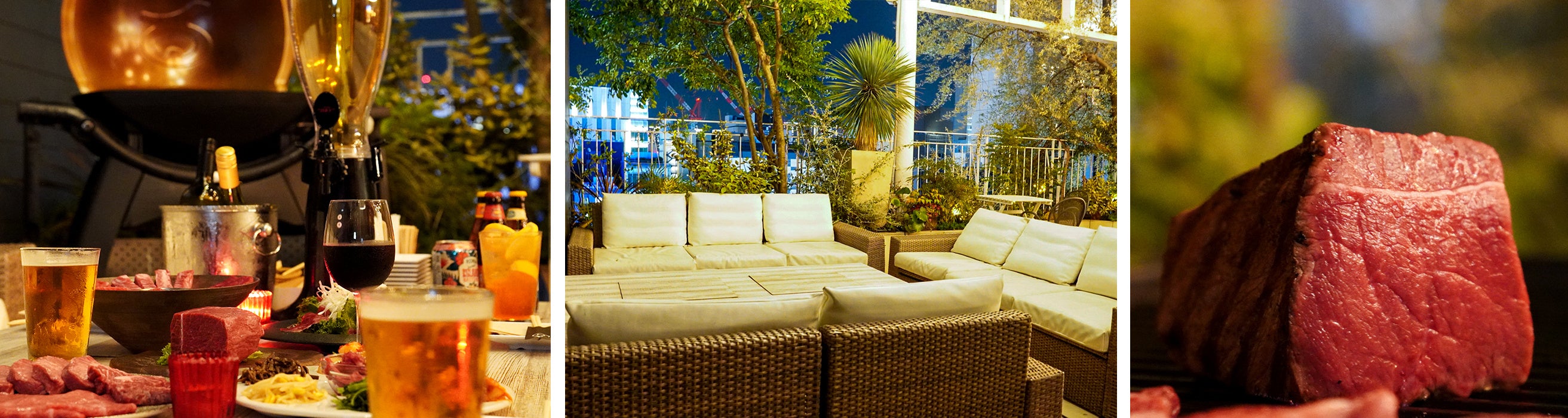 この度、完全予約制・1日1組ソファ席限定で、同ビル8階にある『YAKINIKU MARUUSHI』の厳選黒毛和牛を使った「プレミアム和牛BBQコース」が新たに登場。リゾート感あふれるソファシートで、極上のBBQ体験をご提供します。