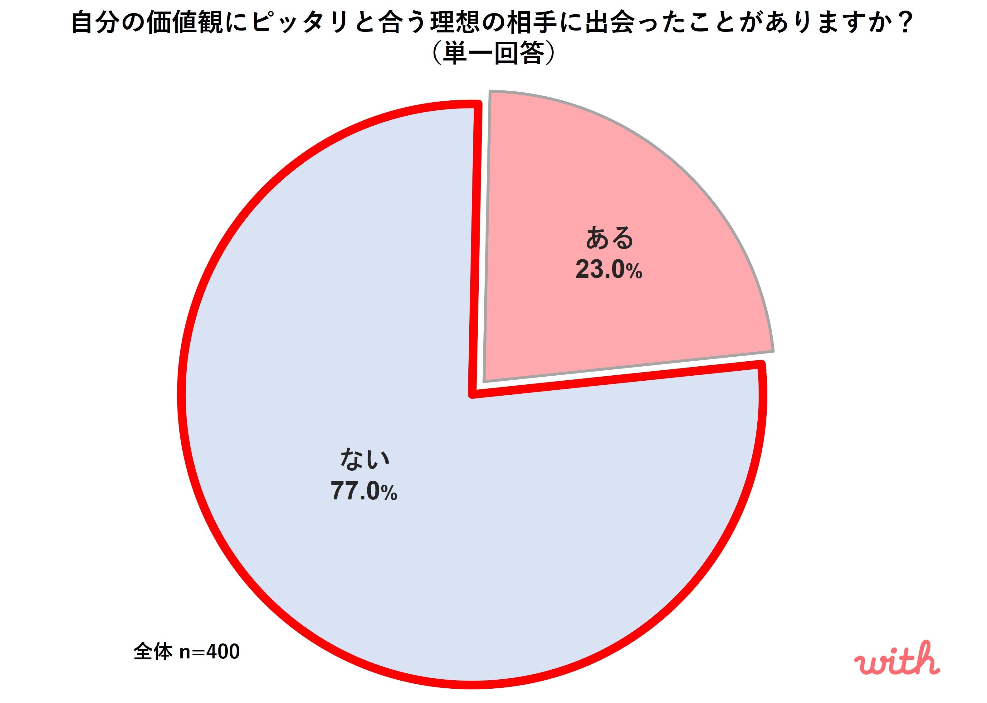 - 自分の価値観に合う「理想の相手」と出会ったことがない人が77.0%と、多数を占める