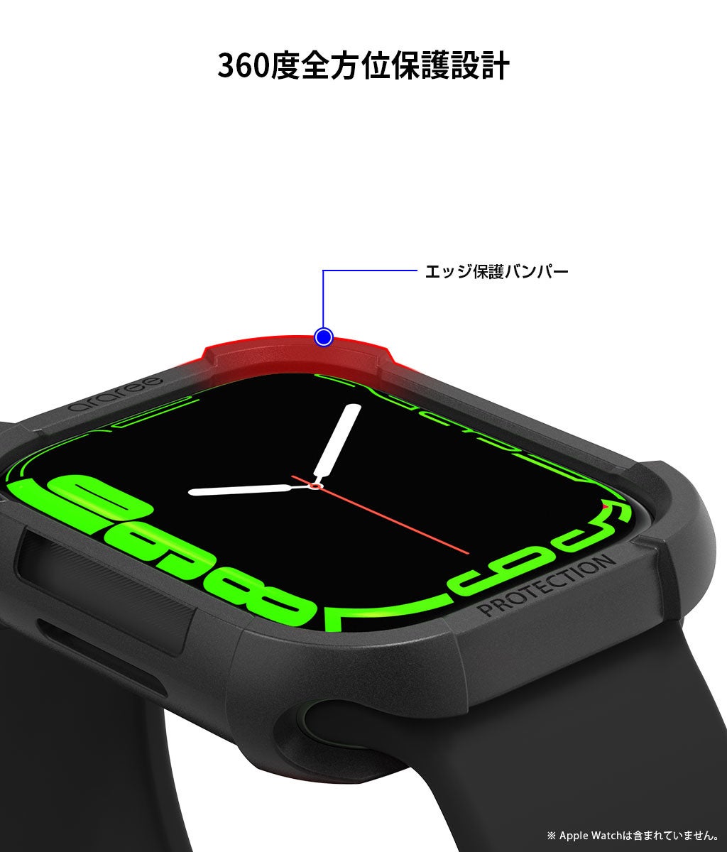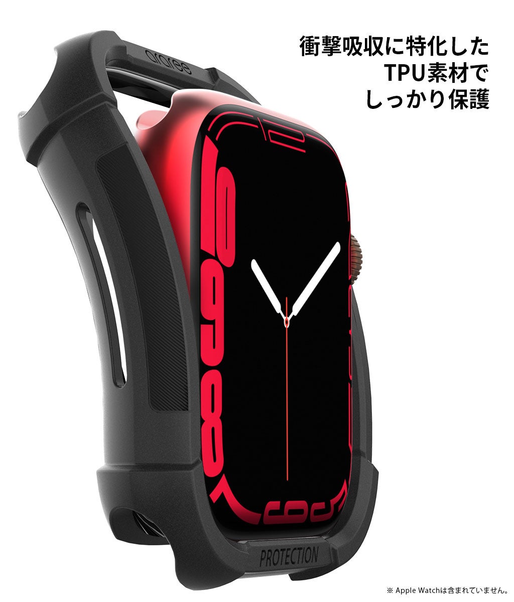 本製品は、衝撃吸収性の高いTPU素材を使用し、360度全方向保護設計であらゆる衝撃から保護するAppleWatch専用ケースです。