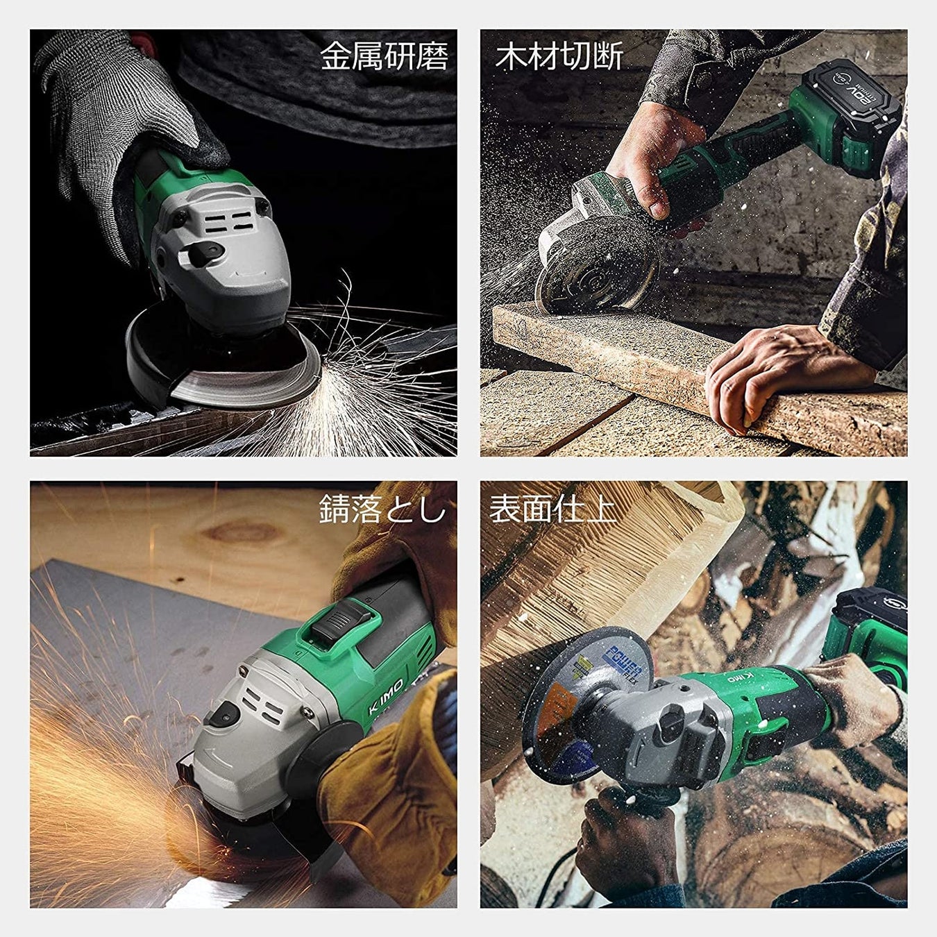 低速高トルク型ディスクグラインダーで、金属の研磨・バリ取り・表面仕上・錆落とし・石材/木材切断などの作業に最適です。