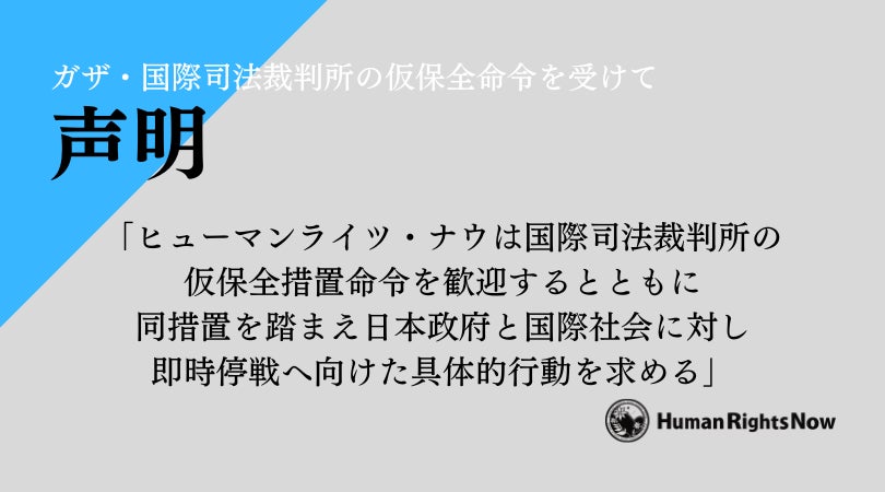 ヒューマンライツ・ナウは国際司法裁判所の仮保全措置命令を歓迎するとともに 同措置を踏まえ日本政府と国際社会に対し即時停戦へ向けた具体的行動を求める