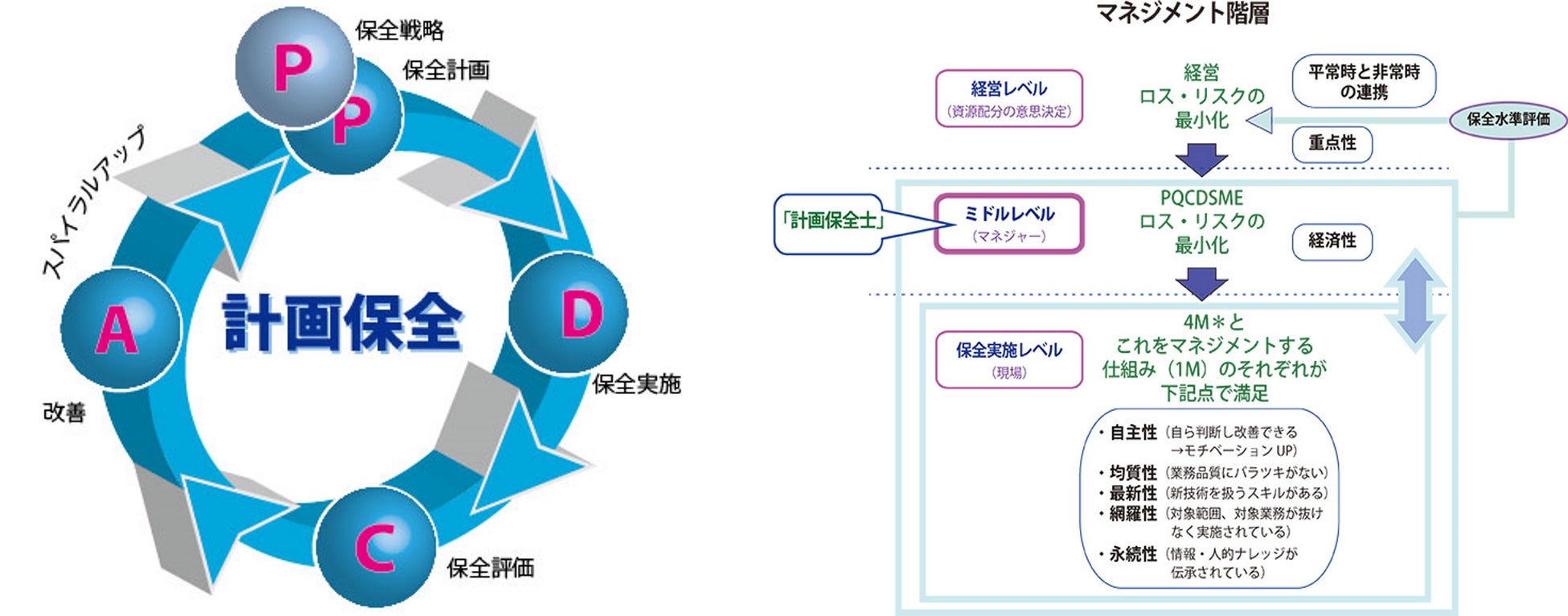 公益社団法人日本プラントメンテナンス協会(会長:河合 満[トヨタ自動車株式会社 Executive Fellow])では、製造現場の課題・問題を解決する手段の一つとして「計画保全」の重要性を唱えている。