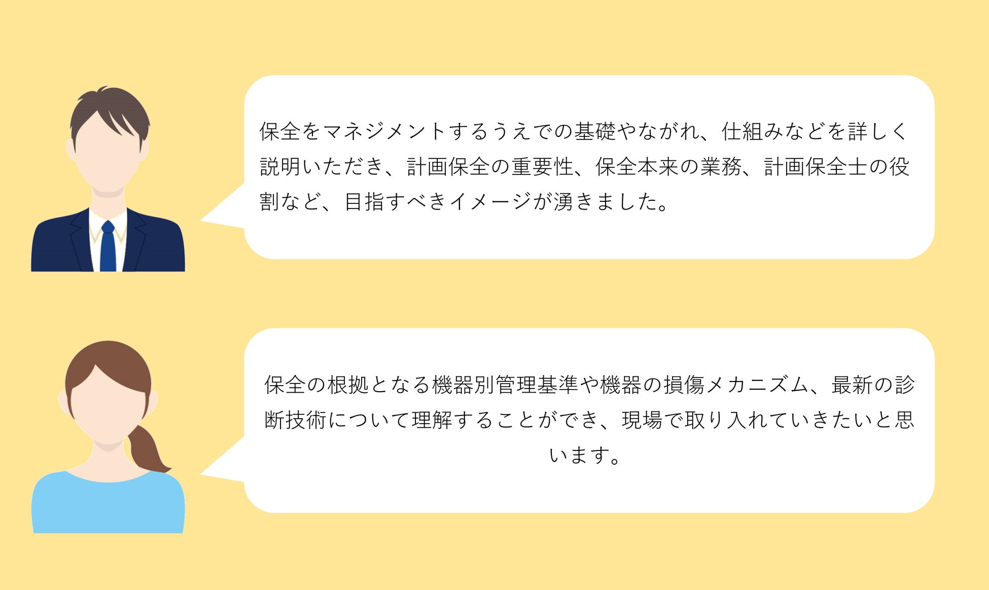 計画保全士養成コースでは、計画保全を実行する「計画保全士」を養成いたします。
