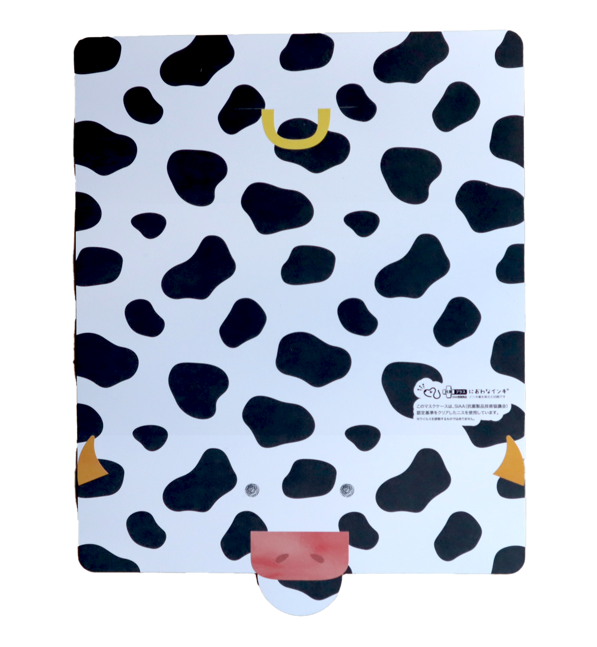 2021年度のプロモーション活動にて制作した牛柄の紙製マスクケースです。