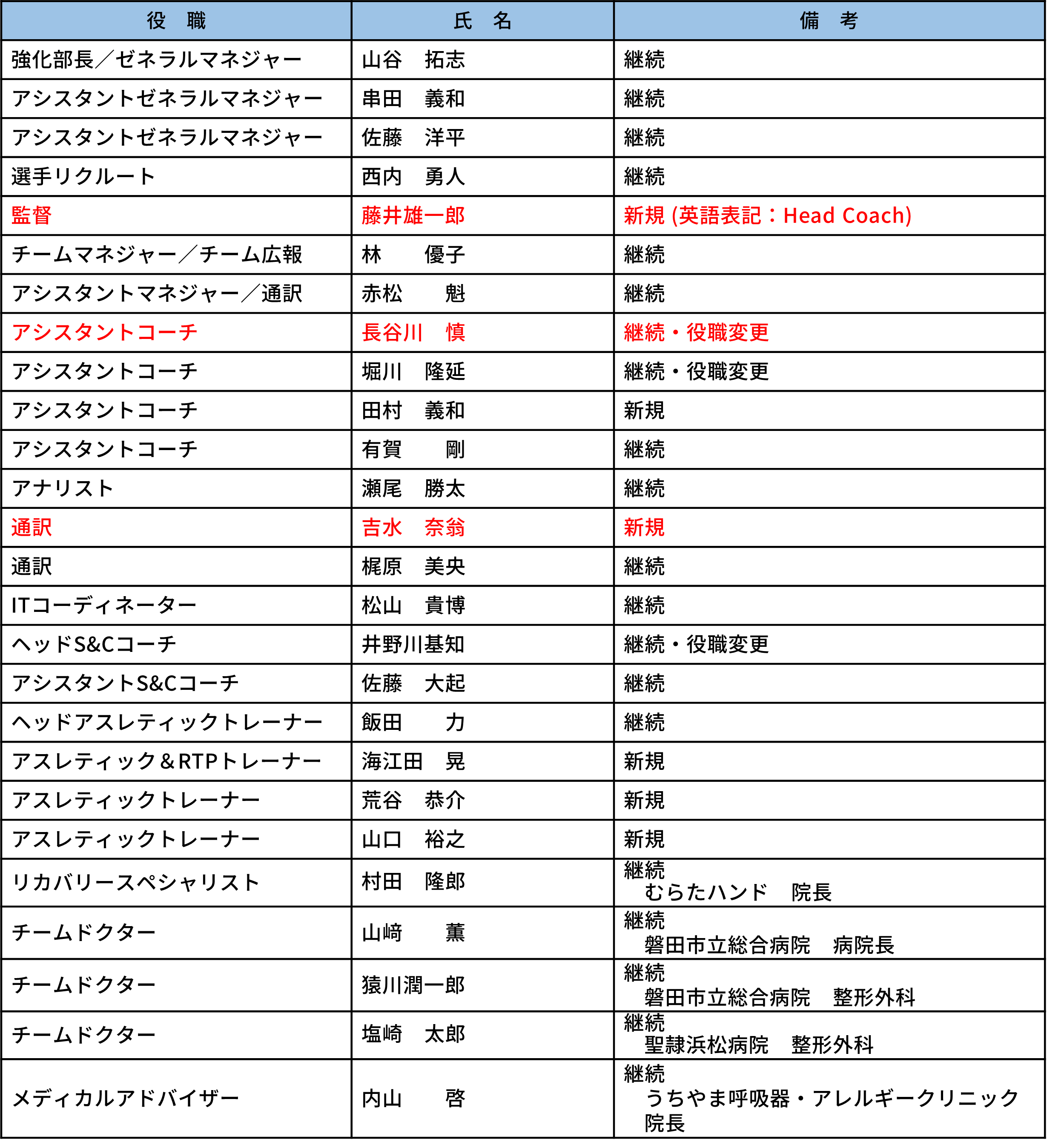静岡ブルーレヴズ2023-24シーズンの強化部/チームスタッフ体制につきまして、下記の通り決定しましたのでお知らせします(2023年7月24日一次発表済み)。