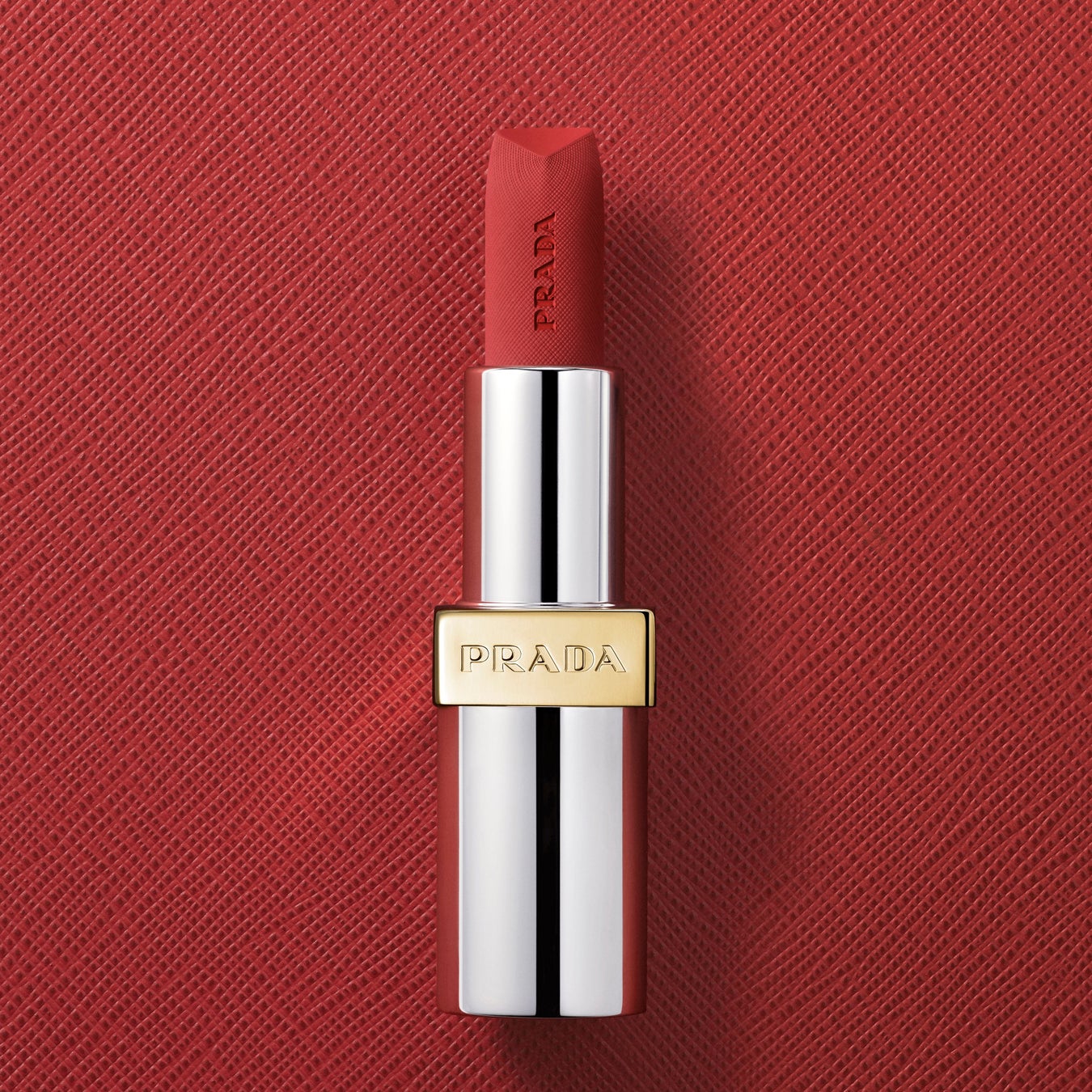 軽さと長時間続く色持ち*1、ロゴをあしらったアイコニックなデザインが特徴のモノクローム ウェイトレス リップカラーから発売する限定色は緊急性と恒久性を兼ね備えたタイムレスな色として、プラダのビジョンとインスピレーションを反映する象徴的なカラーの1つ「レッド」をベースに生まれました。