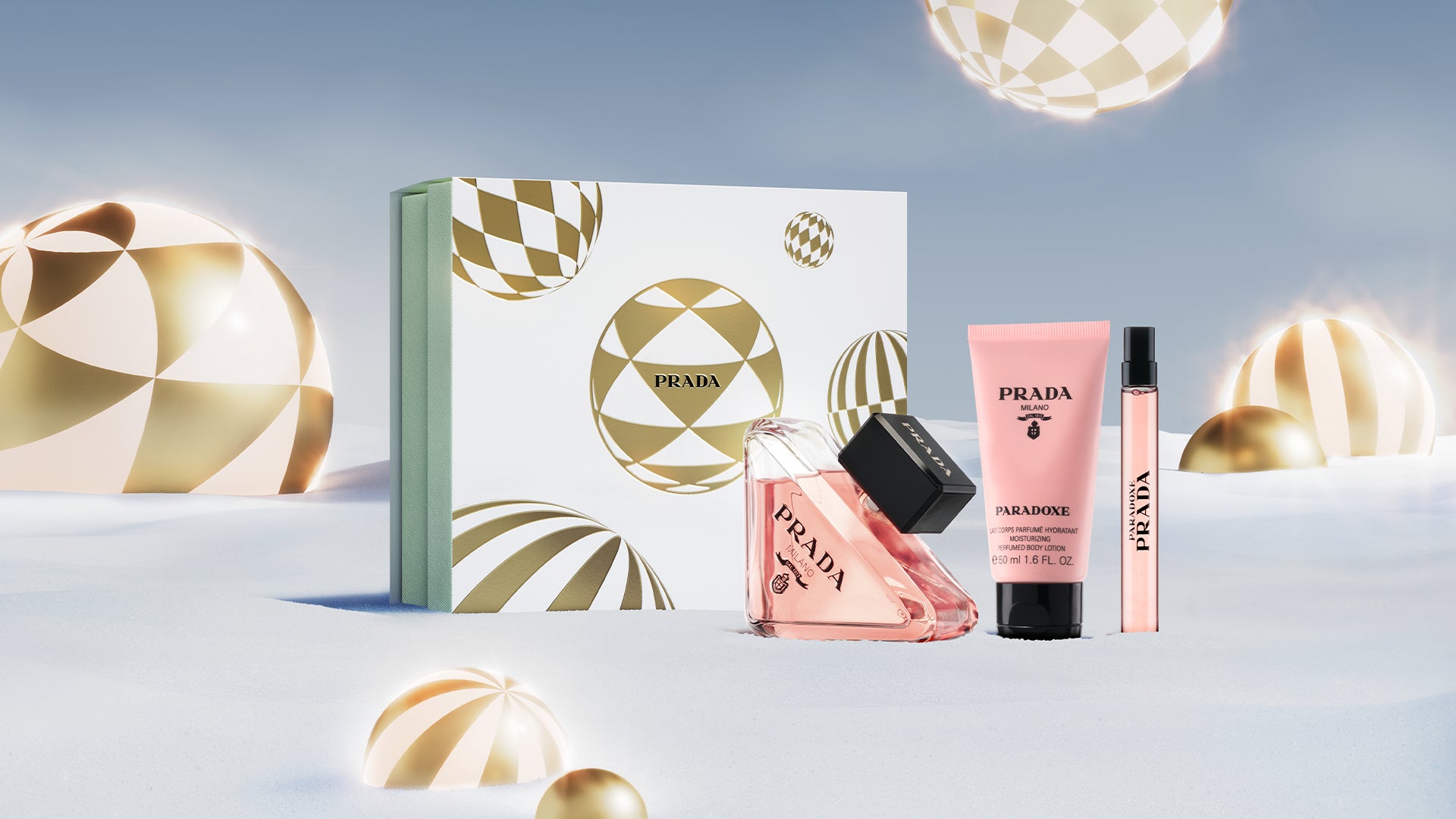 そして、「プラダ パラドックス オーデパルファム」をはじめとするプラダを代表するフレグランスが、「オーナメント」パターンで彩られたホリデー仕様のボックスとともに限定コフレとして登場します。