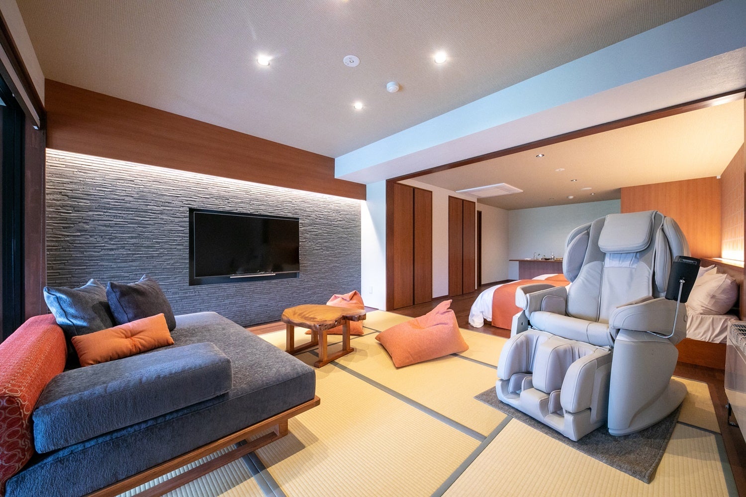ゆったりとした純和風の趣と洋の快適さを兼ね備えた和洋室です。和の落ち着きと洋の便利さが調和した空間が広がり、ご友人やご家族と共に最大5名様までご一緒にお楽しみいただけます。