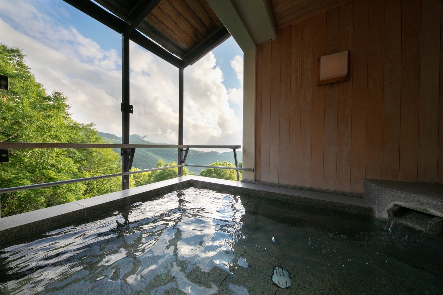 古民家風と数寄屋造り風の2つの特別室は、日本家屋の温もりと風情を感じさせる、まさに贅沢な空間です。それぞれのお部屋には、発哺温泉の源泉が注がれた温泉風呂が完備され完全プライベートな時間をお楽しみいただけます。