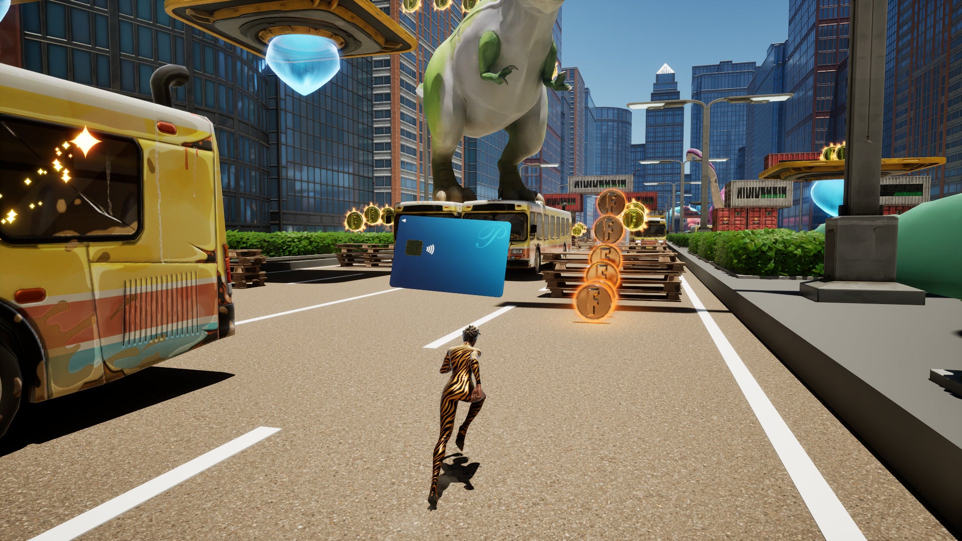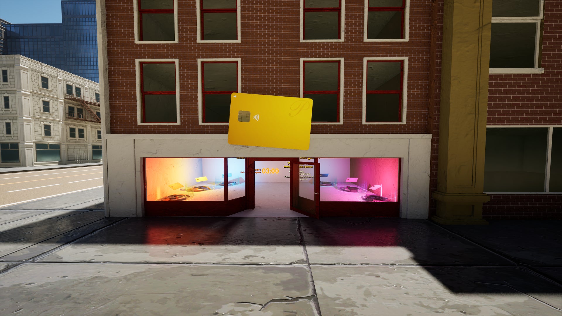 プレイヤーは、購入した土地に建設された小売店等にカード決済端末の設置ができ、アイテム購入時には実際にP-oneカードを使用しタッチ決済のアクションを体験できます。そしてP-oneカードの「自動で請求時1%OFF」という現実の機能をゲーム内で実体験することが可能です。