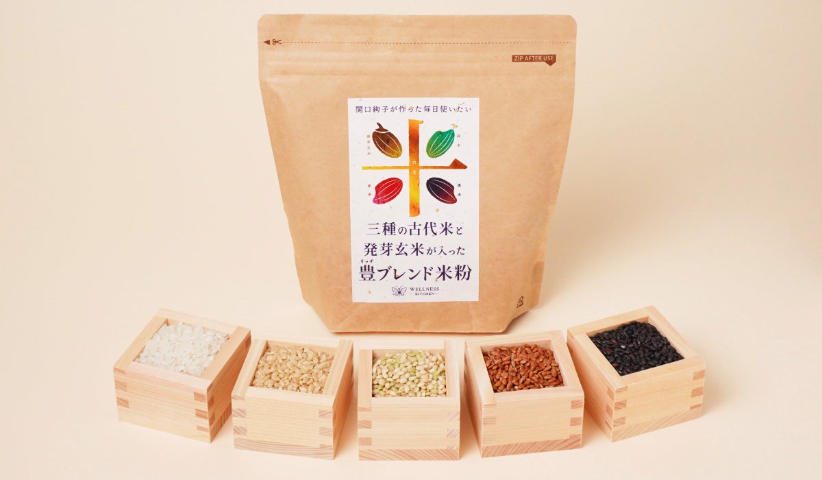 「三種の古代米と発芽玄米が入った豊ブレンド米粉」販売ページ:https://nufu.online/products/richblend-riceflour_wellnesskitchen?utm_source=pr&utm_medium=referral&utm_campaign=wellnesskitchen_pr_230529