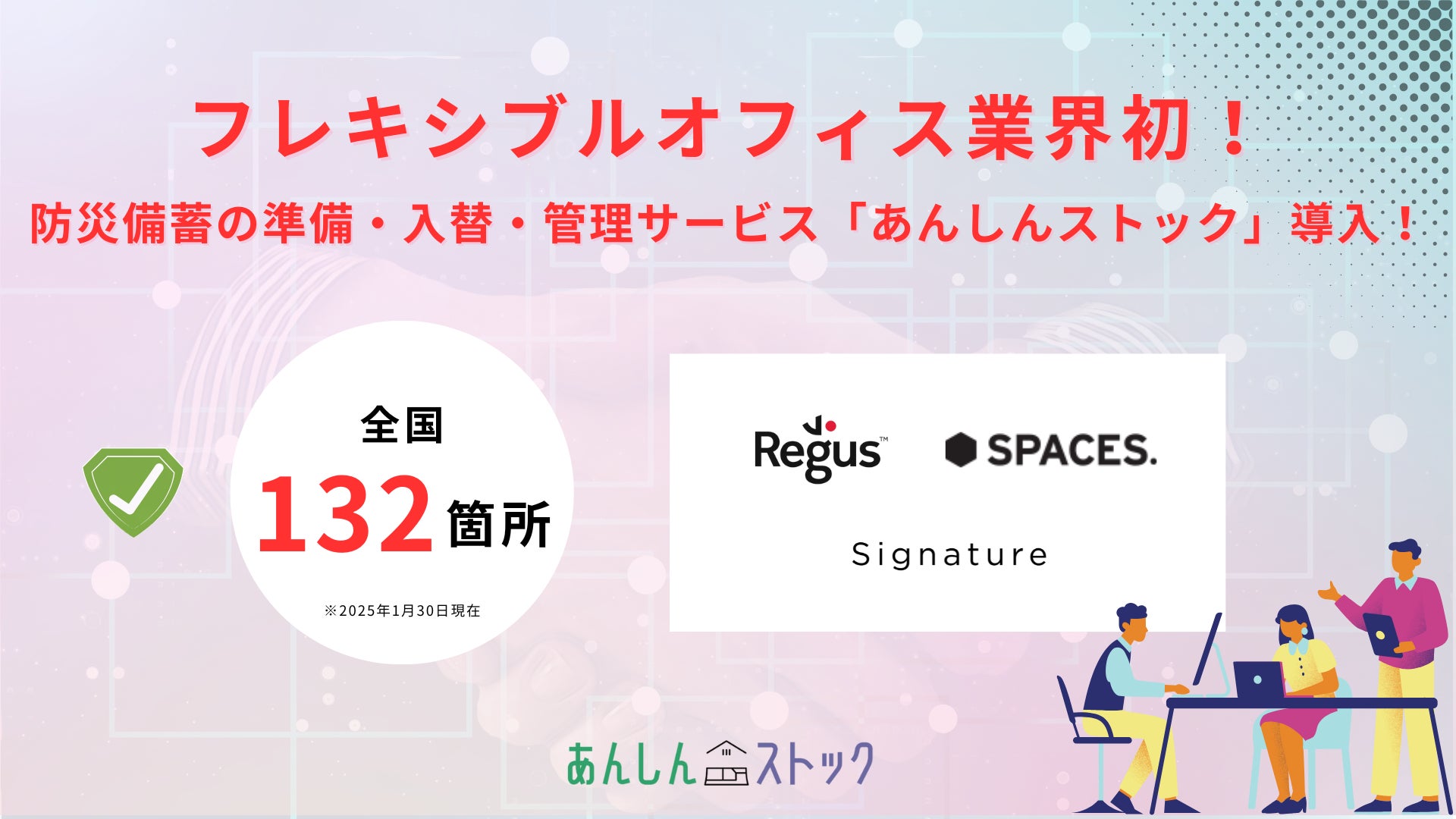 株式会社Laspy(本社:東京都千代田区、代表取締役CEO:藪原拓人、以下「Laspy」)は、日本リージャス株式会社(以下「リージャス」)が提供する全国132拠点(2025年1月30日現在)を対象に、オフィス防災備蓄管理サービス「あんしんストック」の提供を2025年2月より開始いたします。これにより、入居者の皆様に「安心」と「備え」を届ける新たな取り組みを実現します。