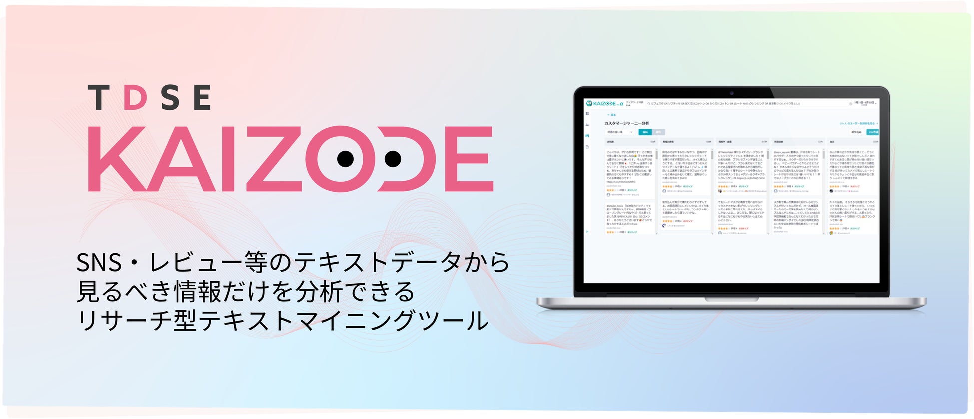 TDSE株式会社(東京都新宿区、代表取締役社長:東垣直樹、証券コード:7046)は、リサーチ型テキストマイニングツール『KAIZODE』の提供を開始したことをお知らせいたします。