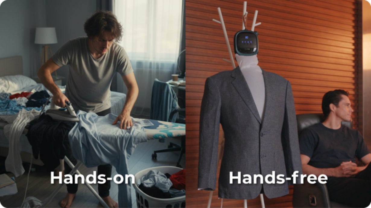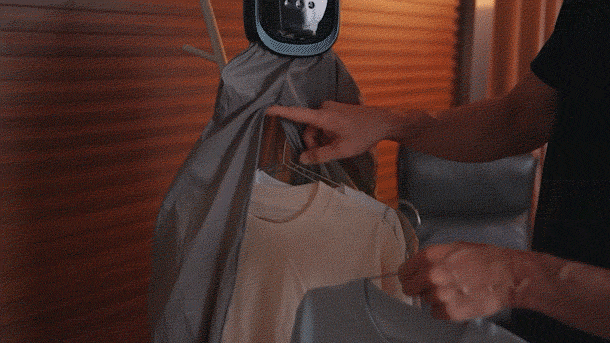 【乾燥革命】吊るすだけ。乾燥もアイロンも終わるAI衣類ケアデバイスLaunbot