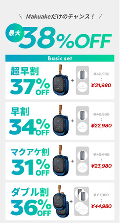 ・ベーシックセット:通常価格 34,980円→Makuake限定価格 21,980円