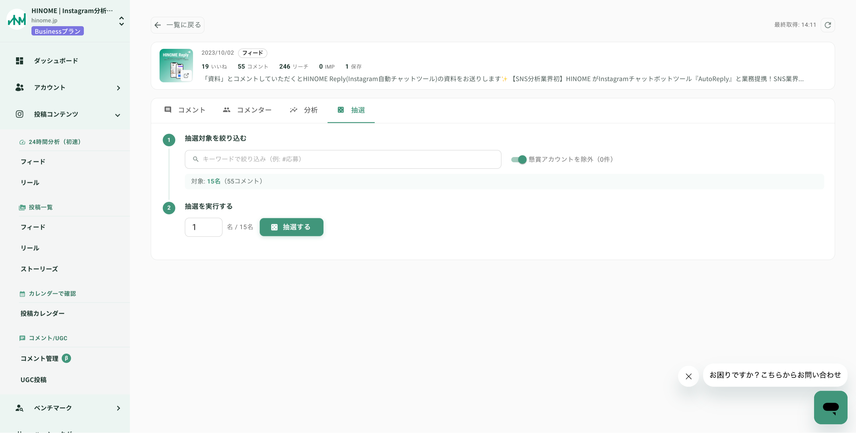 事業内容: Instagram分析・運用ツール『HINOME』の開発・運営