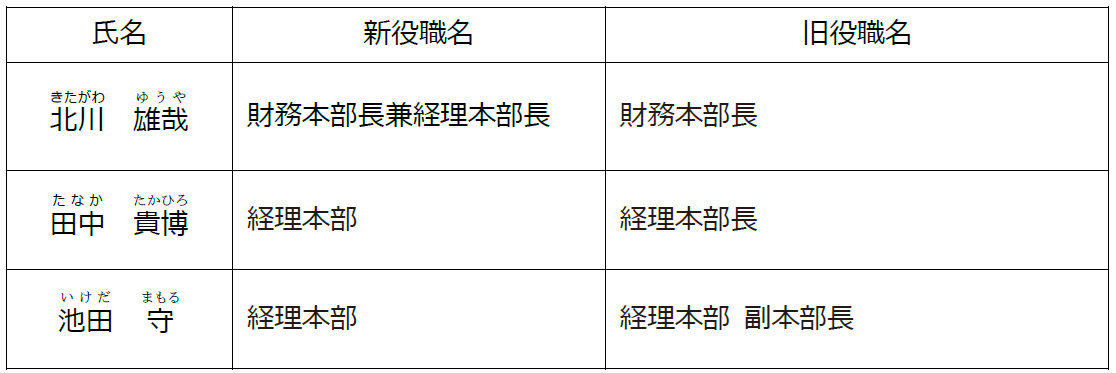 当社は、本日開催の取締役会において、以下のとおり本部長等の異動について決議いたしましたのでお知らせいたします。
