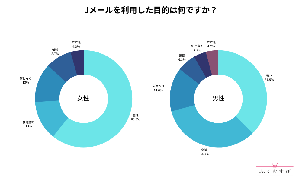 ・男性がJメールを利用した目的は、遊びが1位、恋活が2位となりました。