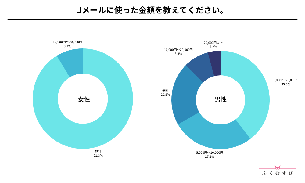 ・男性がJメールに使った金額は、1,000円〜5,000円が最も多くなりました。