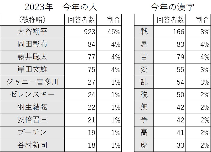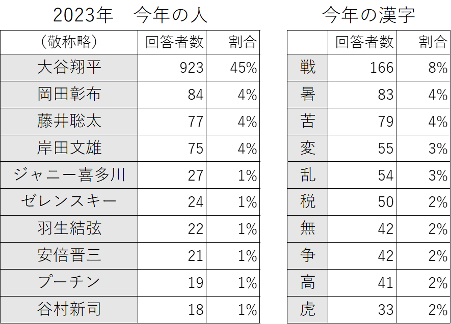 6.今年の人は「大谷翔平」45% 今年の漢字は「戦」8%