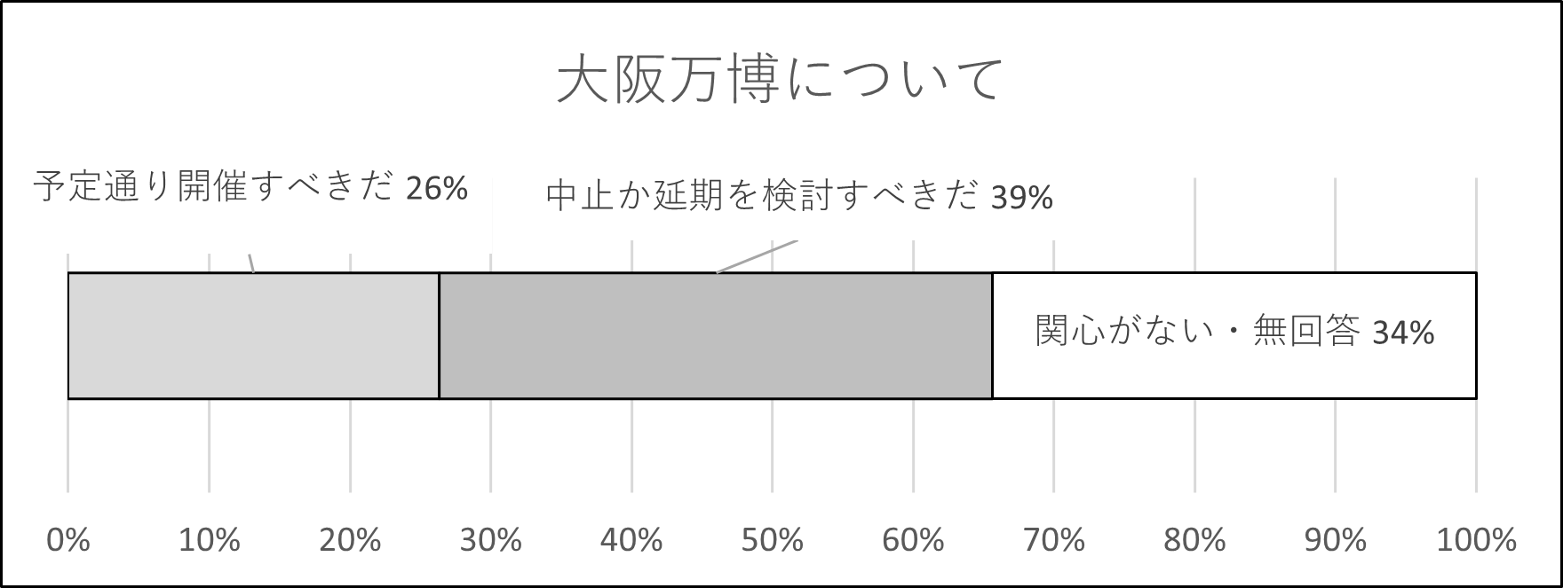 ■大阪万博「中止か延期を」39%・「予定通り開催」26%