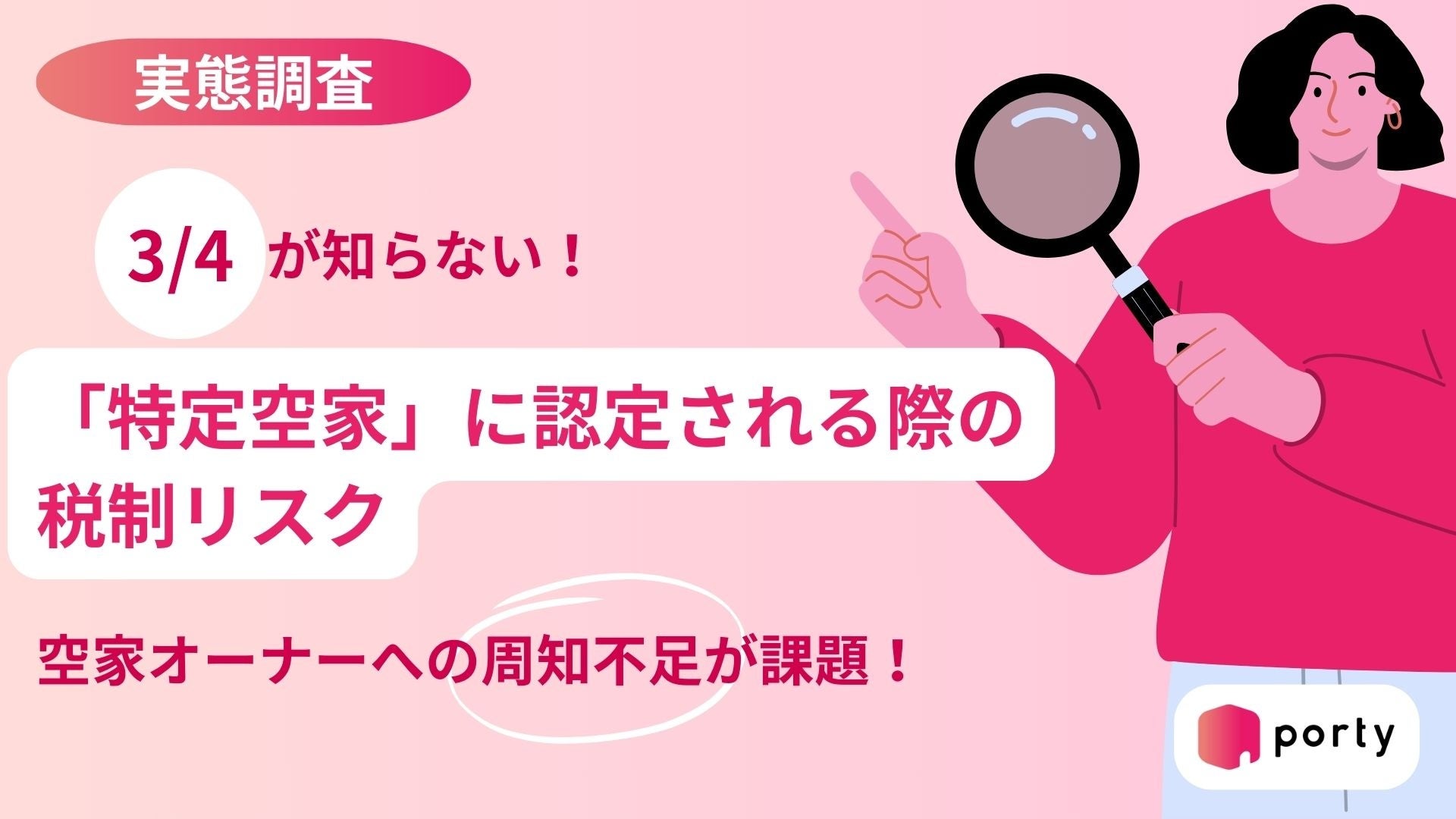 株式会社ポルティ(神奈川県川崎市、代表取締役:平 瑶平、以下「ポルティ」)は、全国の空き家オーナー(または相続予定の方)200名を対象に、「特定空家」に認定されると住宅用地の固定資産税軽減特例が外れるリスクについての認知状況を調査しました。