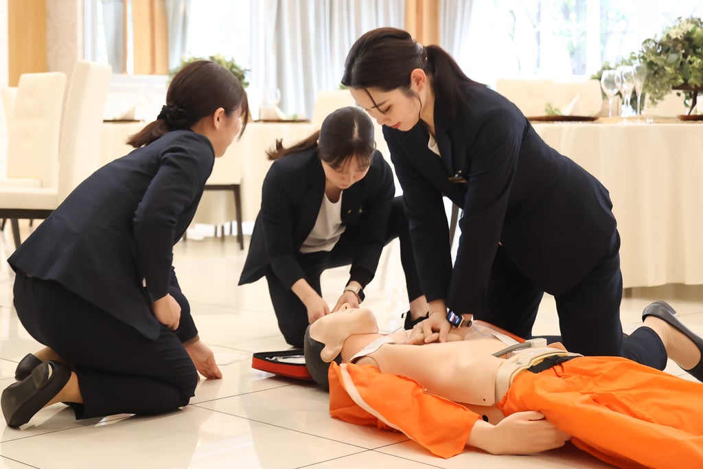 当結婚式場は小さなお子さまからご年配の方まで幅広くご利用いただいております。総務担当の者からこのような取り組みがあると伺い、早速実行させていただきました。皆さまに安心してご利用いただき、一生に一度の結婚式を素敵な思い出にしていただくため、常に何かあったときでも、対応できるよう努めていきたいと思います。また、私たちの取り組みが、少しでも地域のためになれれば幸いです。