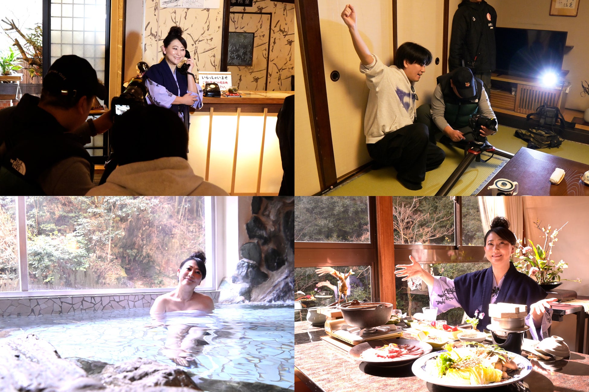 鈍川温泉のCMを作ってほしいとお願いされた友近さん。そこに、友近サスペンス劇場でタッグを組んだフィルムエストTVにしい監督が駆けつけメガホンを取りました。旅館の昭和レトロな空間を活かしたCMに乞うご期待!完成後はフィルムエストTVのYouTubeチャンネルで公開予定です。