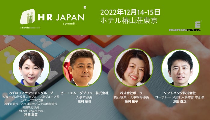 マーカス・エバンズ・イベント・ジャパン・リミテッド(本社:英国/代表:雪下 大輔、以下「マーカスエバンズ」)は、2022年12月14日(水)-15日(木)の2日間、人事部門統括責任者向けビジネスサミット『HR Japan Summit 2022』をホテル椿山荘東京にて開催いたします。