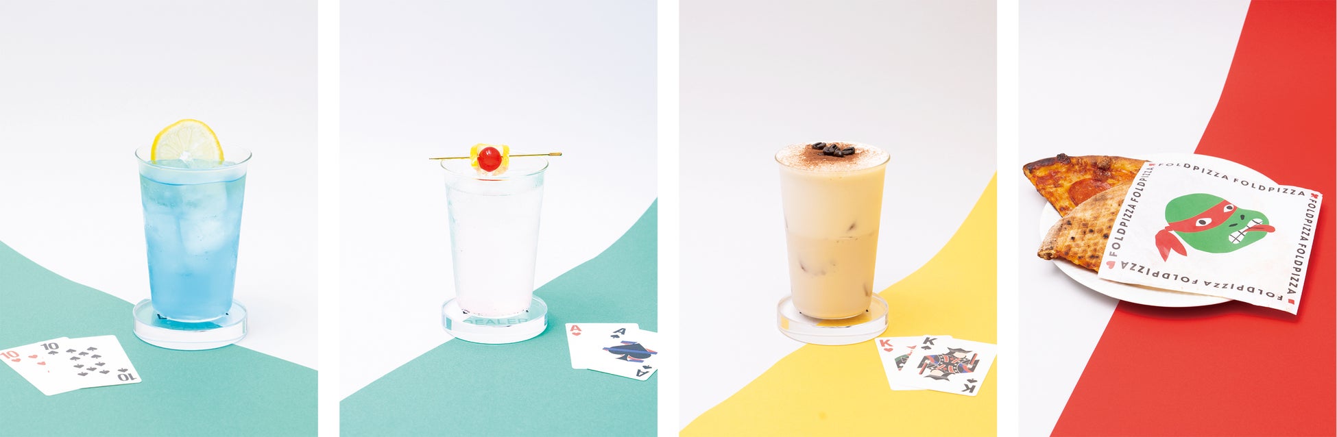 西麻布にある会員制BAR「Cocktailante OBORO(カクタランテ オボロ)」オーナー山川俊太によるテキサスホールデムから着想を得たオリジナルカクテルや「PIZZA SLICE」を手掛ける猿丸浩基監修の元、プレイ中でも食べやすく汚れにくい“POKER FOOD”を提供