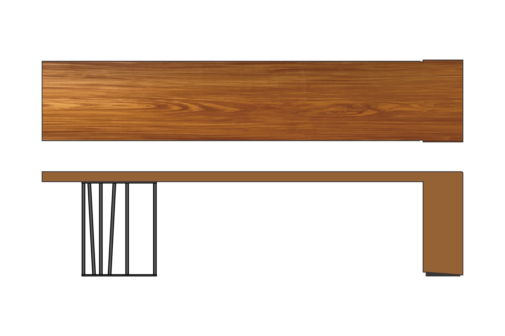 クリエイティブディレクションを手掛ける服部 高志氏によりデザインされた金属脚は繊細な木目の動きを表現。馴染みのある素材、製造方法を用いながらも、ほんの少しのアクセントを加えることで、製品と空間を調和している。