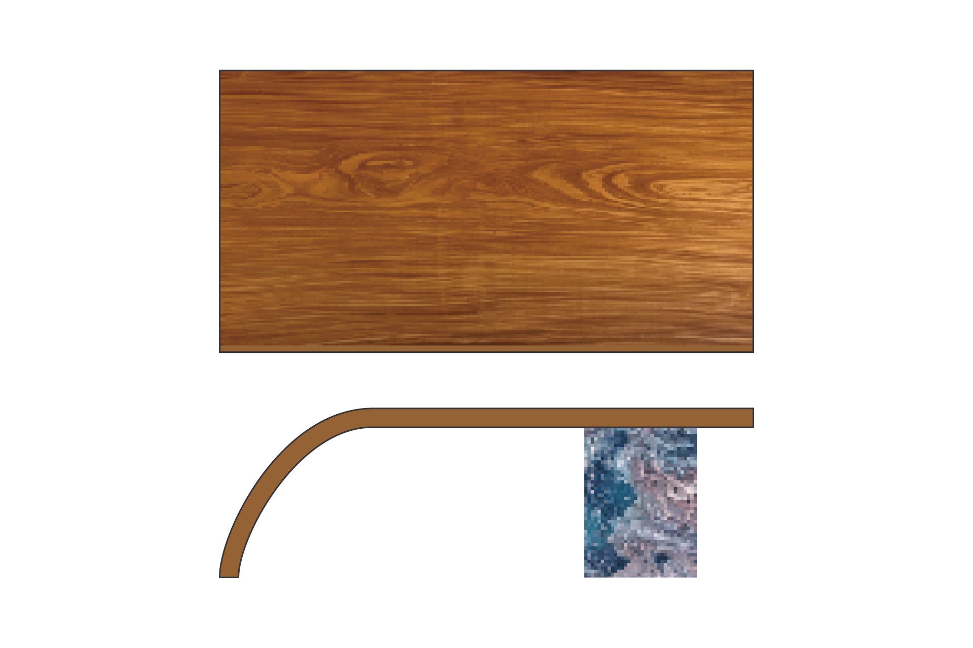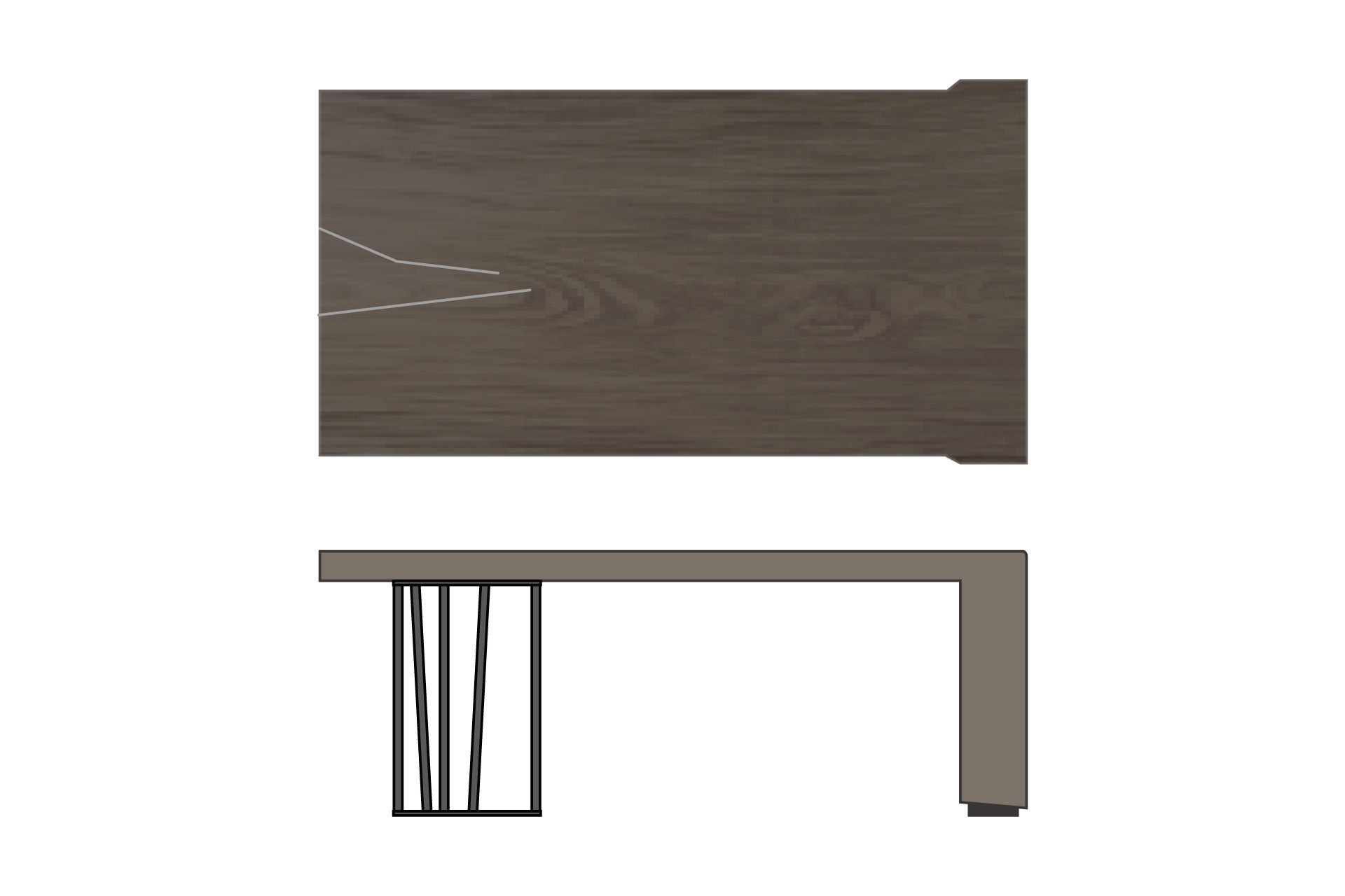 アイカ工業株式会社とのコラボレーションによって生まれた脚は、流れるような自然がモチーフである。