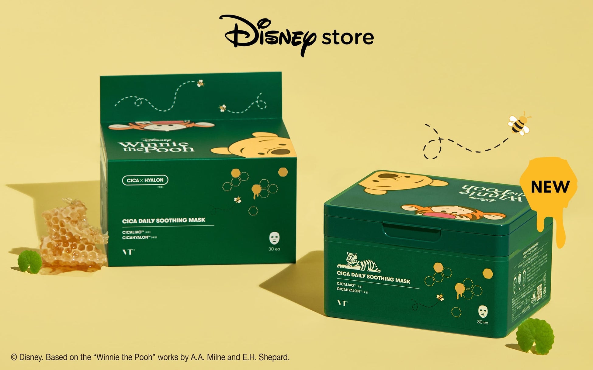 VT CICAに配合されている独自成分「CICAHYALON(シカヒアルロン)™*¹」には、プーさんが大好きなはちみつ由来のプロポリスエキス*²が配合されていることから、8月3日の「はちみつの日」を一緒に盛り上げる限定パッツケージで新登場。甘くとろけ落ちそうなはちみつが思い浮かぶ、プーさんとティガーがデザインされた可愛い心ときめくパッケージの「CICA デイリースージングマスク」で毎日のスキンケアタイムに癒しをお届けします。