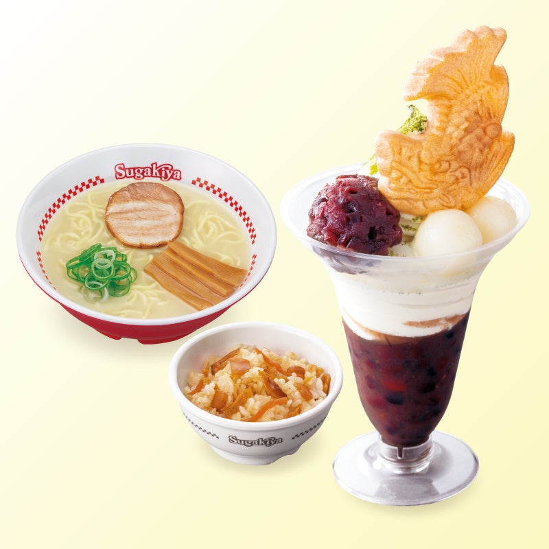 スガキヤの人気メニューとコラボデザートが一緒になった特別セットも期間限定で登場。ラーメンもデザートも一緒に楽しみたい方のためのお得なセットです。