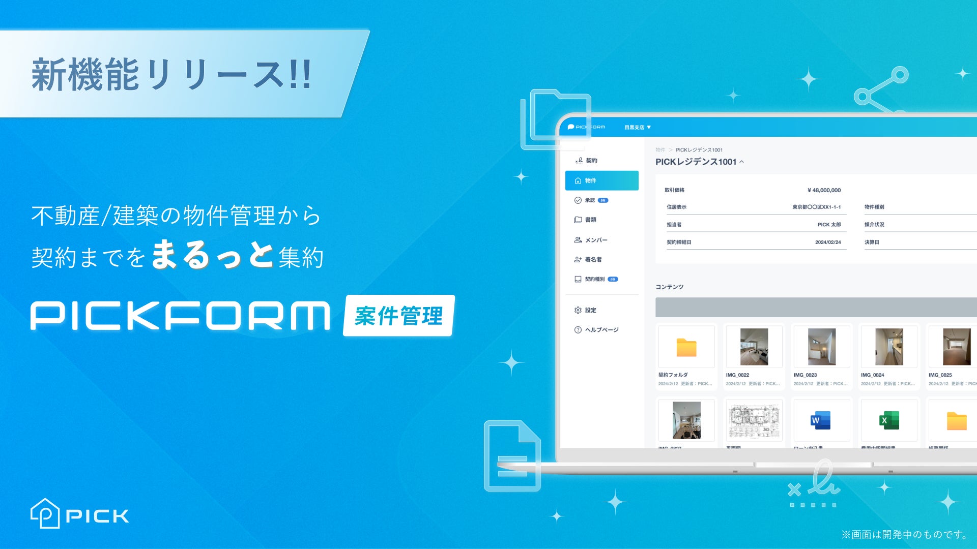 「PICKFORM 案件管理」は2023年12月26日のリリースを皮切りに、2024年3月頃を目処に順次アップデートをしていく予定です。