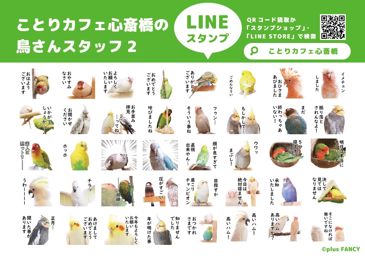 「株式会社エクシードジャパン」ではオリジナルグッズ制作・販売までを行う【plus FANCY】ブランドを展開しており、2022年12月20日より、ことりカフェ心斎橋のかわいい鳥達の写真を元にしたLINEスタンプを発売いたしました。