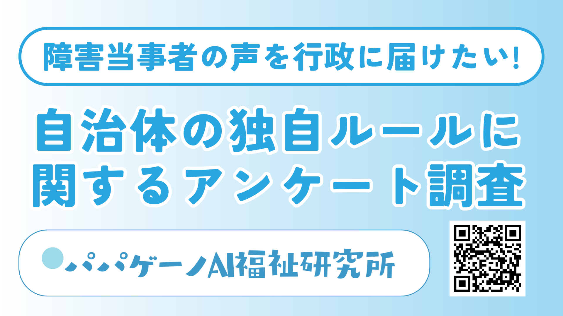 企業のDX支援や、精神・発達障害のある方の就労支援サービスを展開する株式会社パパゲーノ(本社:東京都杉並区、代表取締役:田中 康雅)は、自治体独自のルールによって障害福祉サービスの利用に困難を抱える障害当事者の声を集め、行政への政策提言に活用するためのアンケート調査を2025年12月20日(土)より開始いたします。