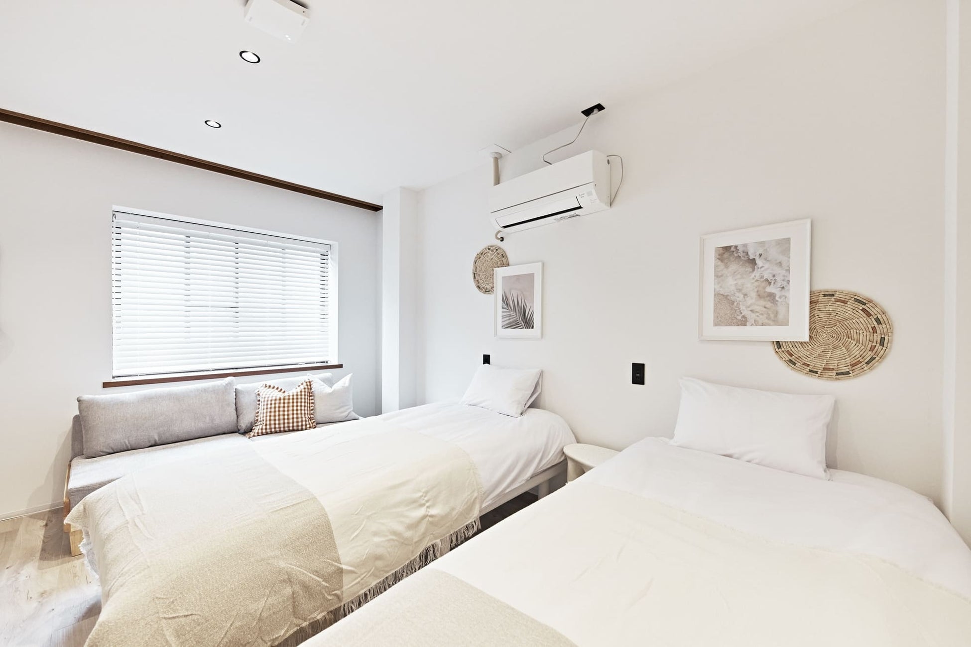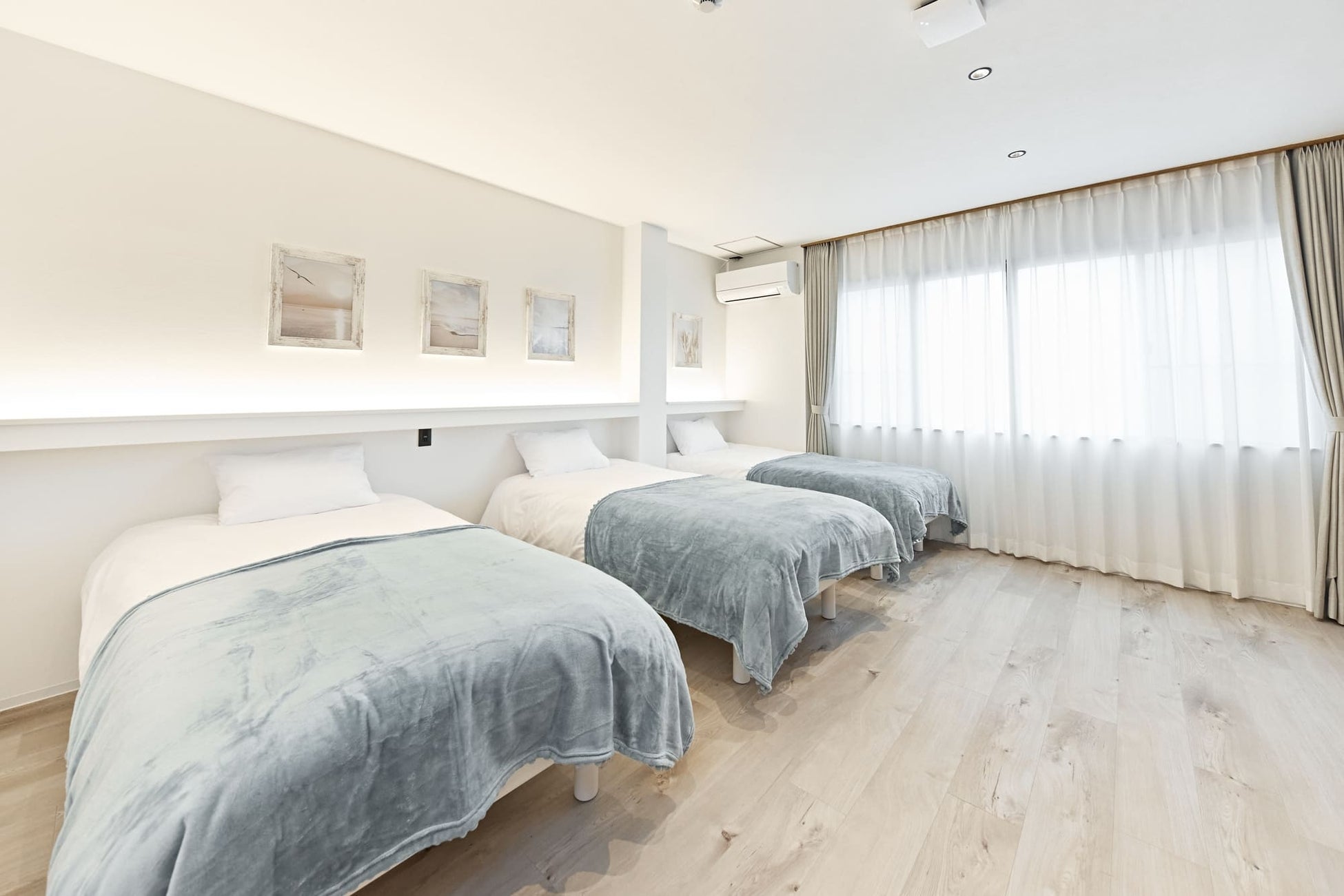4階は都会の真ん中にいてもリゾート地に来たような気分を味わえる日当たりがいい明るくて清潔感のあるベッドルームとなっています。友達に自慢したくなるような空間で、出発の朝まで快適に過ごしていただけます。