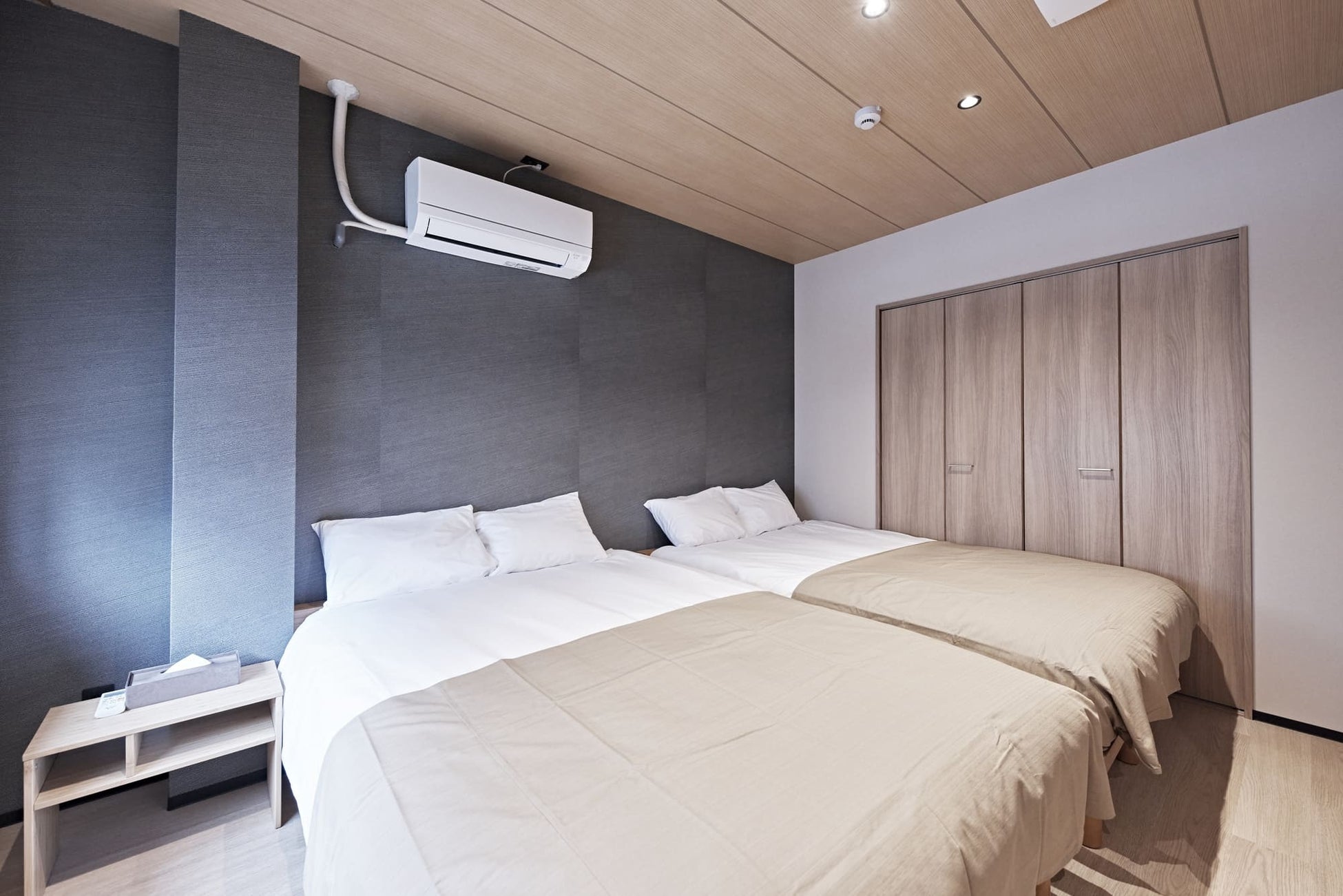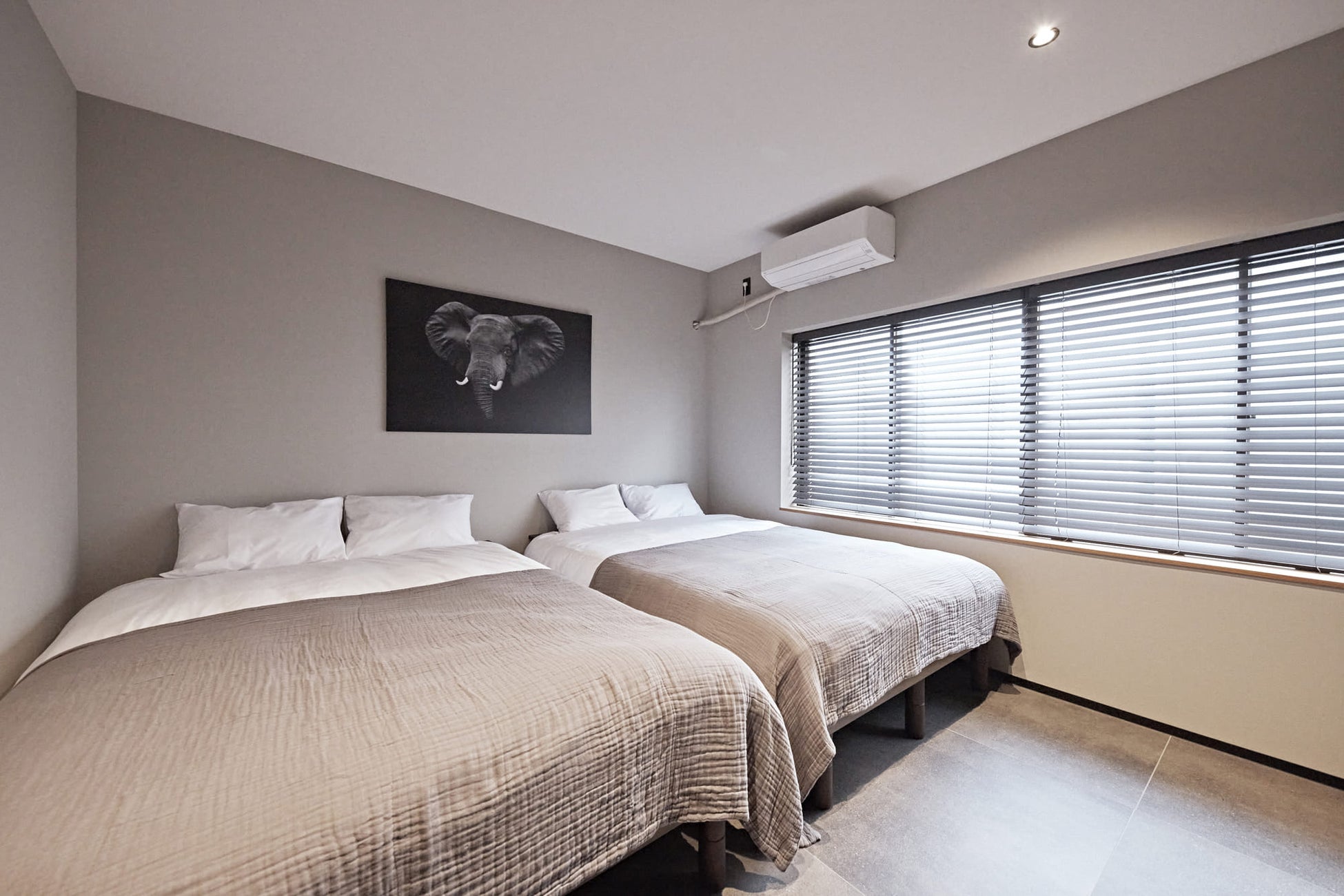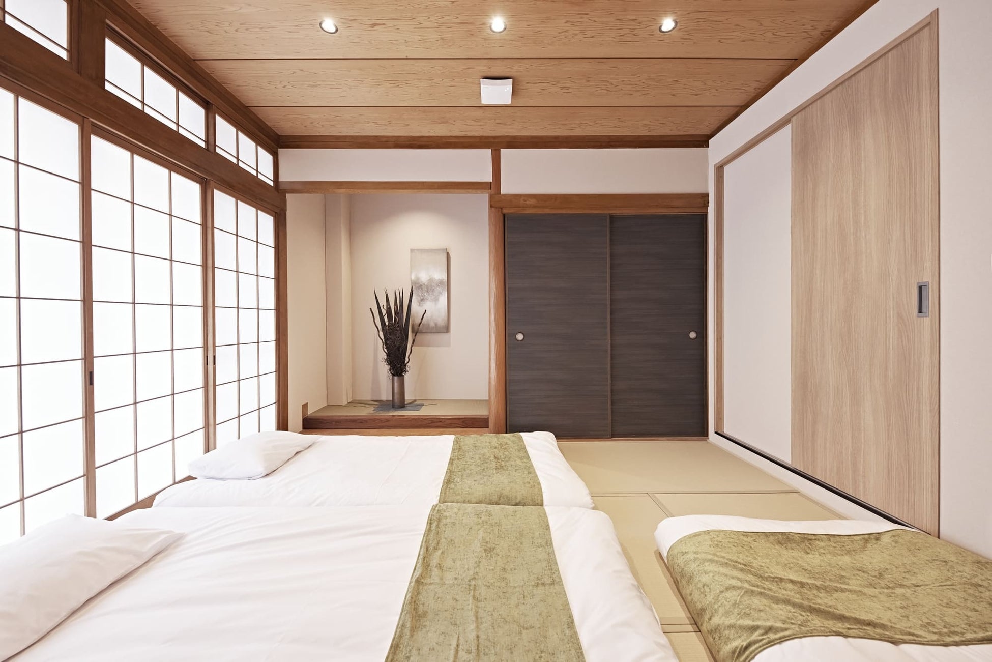 3階は日本が感じられる和を取り入れた空間が広がり、畳のある和室には4組の布団を敷くことができお子様連れでも安心して使っていただける寝室となっています。寝室はダブルベッドが2台ある個室もご用意しています。