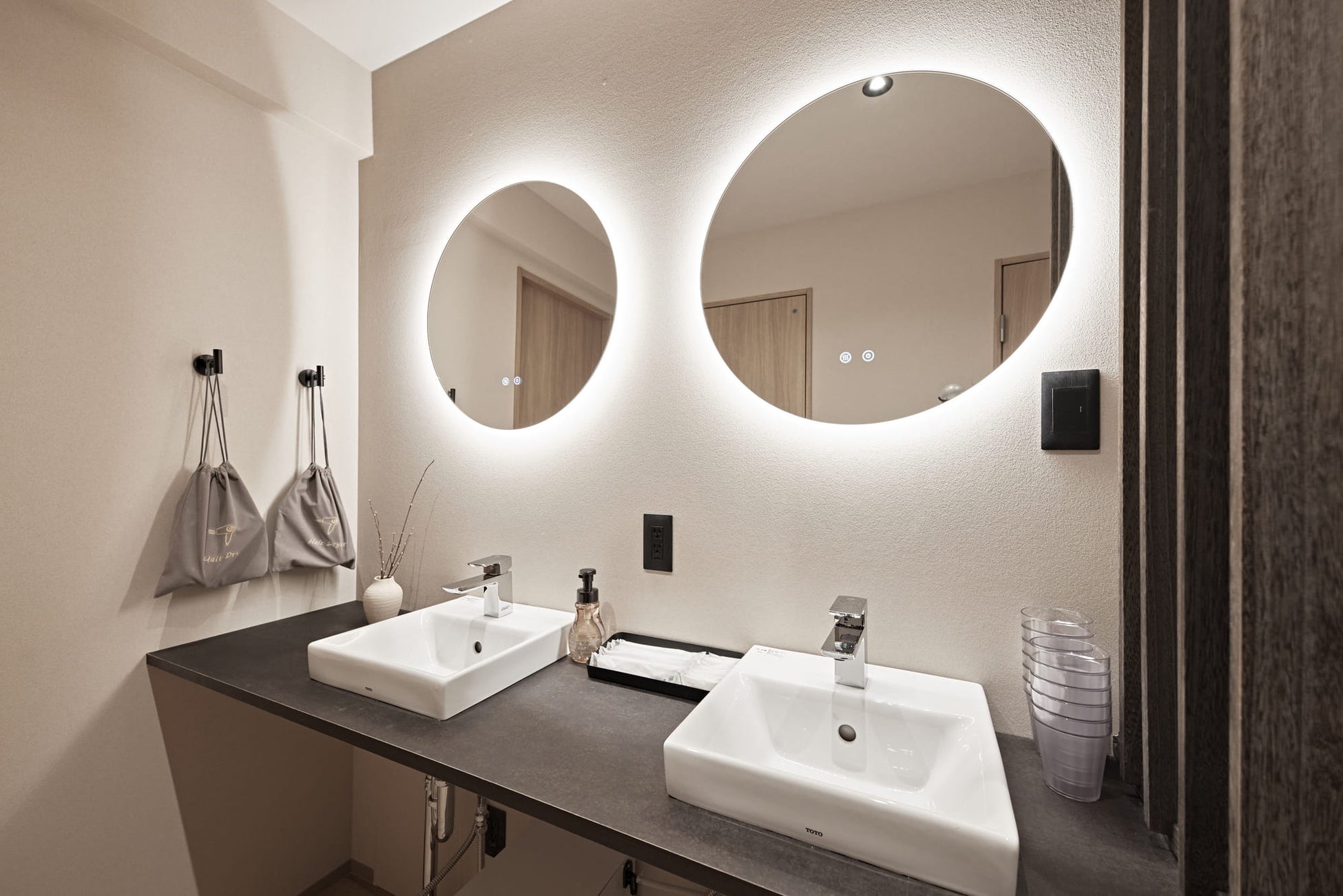 広々とした洗面化粧台と、個室のシャワールームが2箇所あるので、ゆっくりとお出かけの準備をしていただけます。
