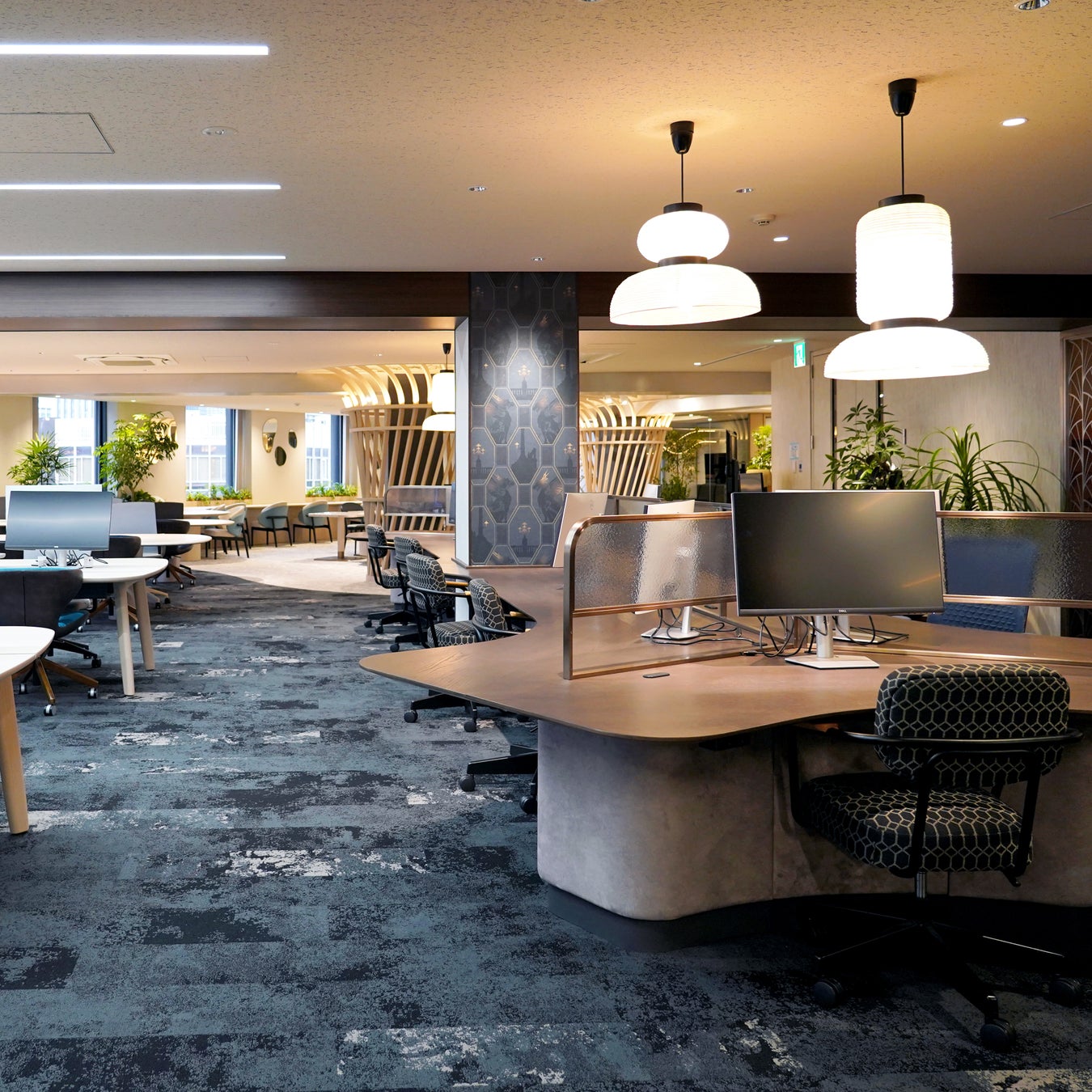 個人やチームの成長を支えるプロダクトを採用。ティーチングやコーチングに最適な距離感のデスク配置や、透過性・可変性・可動性をテーマにした空間設計によって、一人ひとりの働き方に寄り添う「行動的共鳴」を促します。